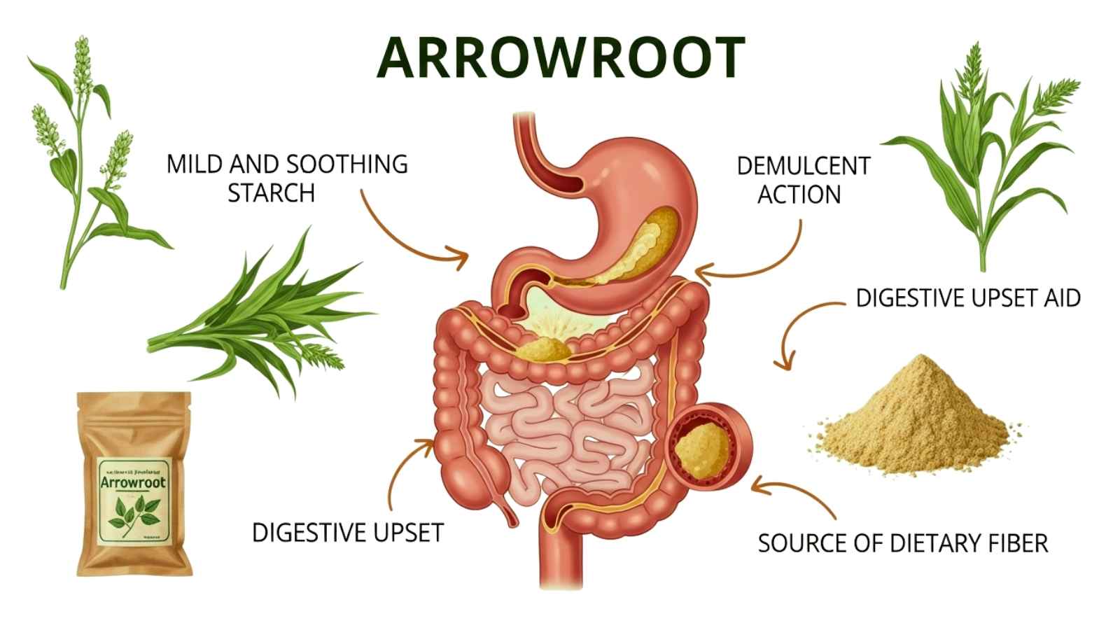 Perhaps the most famous all yet to aims arrowroot in daily life is a digestive support. Arrowroot is a mild and soothing starch for the stomach and digestive tract.