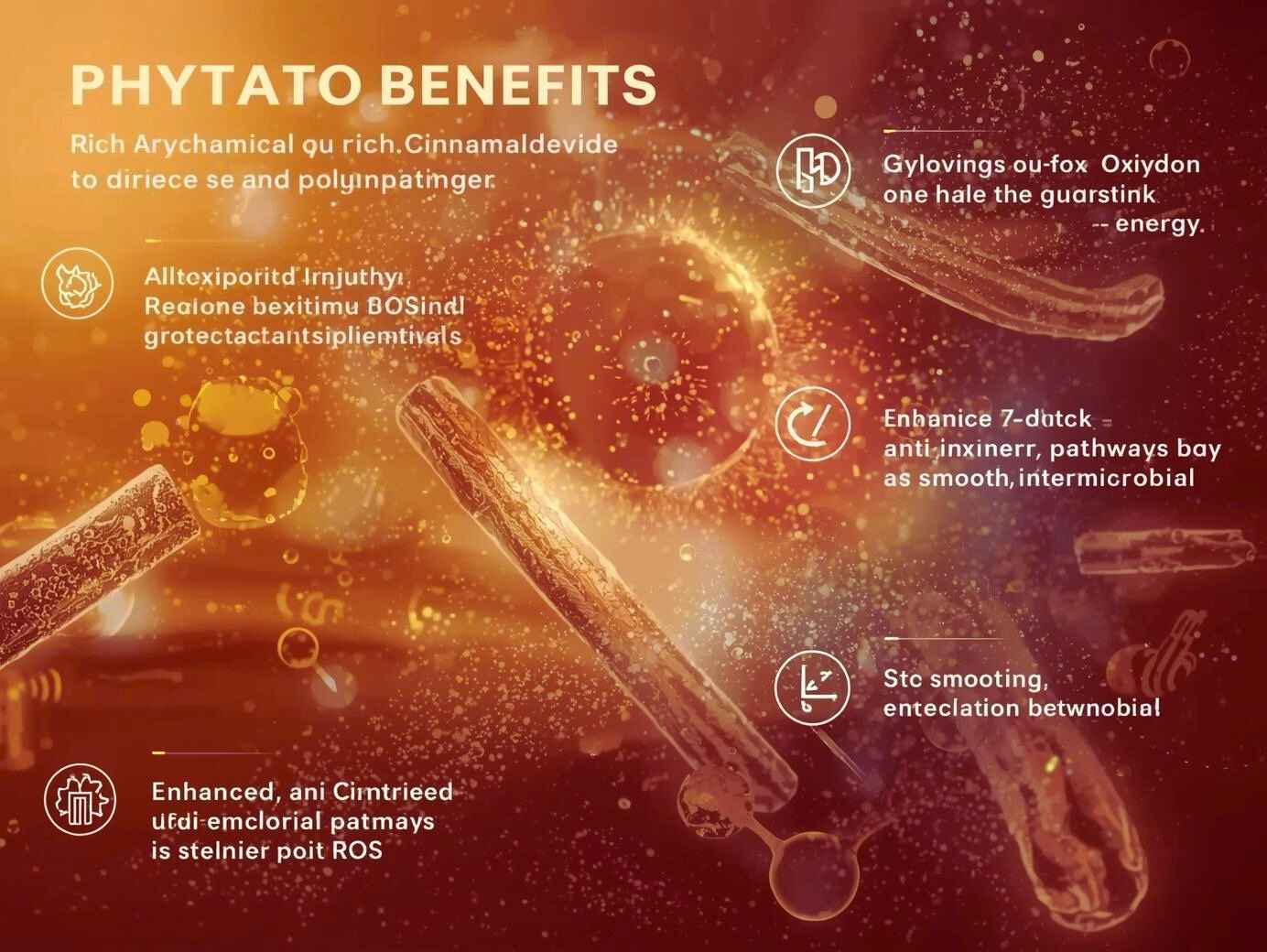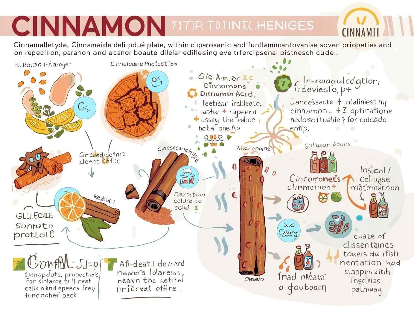 Cinnamon has health benefits because it contains many different phytochemicals, such as cinnamaldehyde, cinnamic acid, eugenol, procyanidins, and different polyphenols. These work together to make cinnamon an antioxidant, anti-inflammatory, and antimicrobial substance. Cinnamaldehyde, which makes up 60–80% of the essential oil, is the active ingredient that gives it its unique smell and is responsible for many of its physiological effects, such as controlling glucose metabolism and changing the way lipids work.