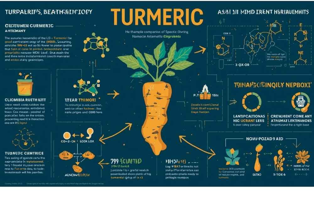 Turmeric has a lot of health benefits because of its bioactive compounds known as curcuminoids. The key compound is curcumin, which gives turmeric its bright yellow hue. Curcumin is a polyphenolic molecule with potent antioxidant and anti-inflammatory characteristics. Additional constituents include demethoxycurcumin, bisdemethoxycurcumin, and volatile oils — e.g., turmerone.