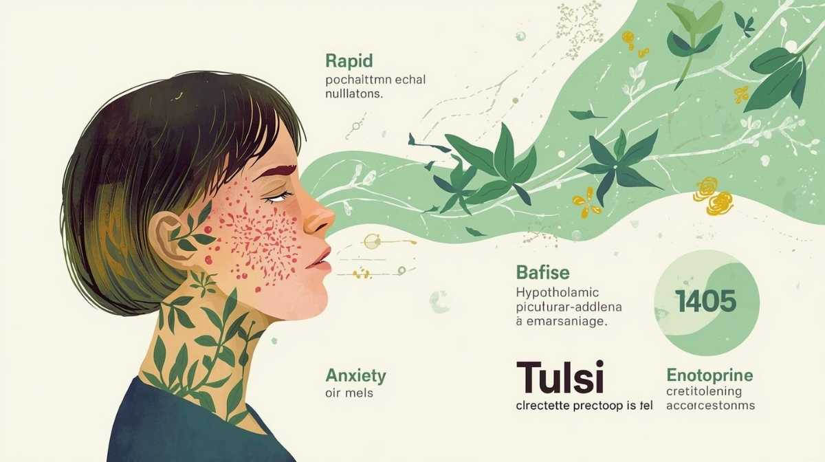 It is recognized that adaptogens can regulate the hypothalamic–pituitary–adrenal (HPA) axis to modulate the stress response. Inflammation, insulin resistance, and mood disorders are the results of prolonged stress, which elevates cortisol levels. Clinical research has demonstrated that tulsi has the capacity to reduce serum cortisol levels (a stress hormone) and subjective stress levels. Tulsi contributes to the stabilization of cortisol levels, which in turn fosters mental clarity and emotional resilience.
