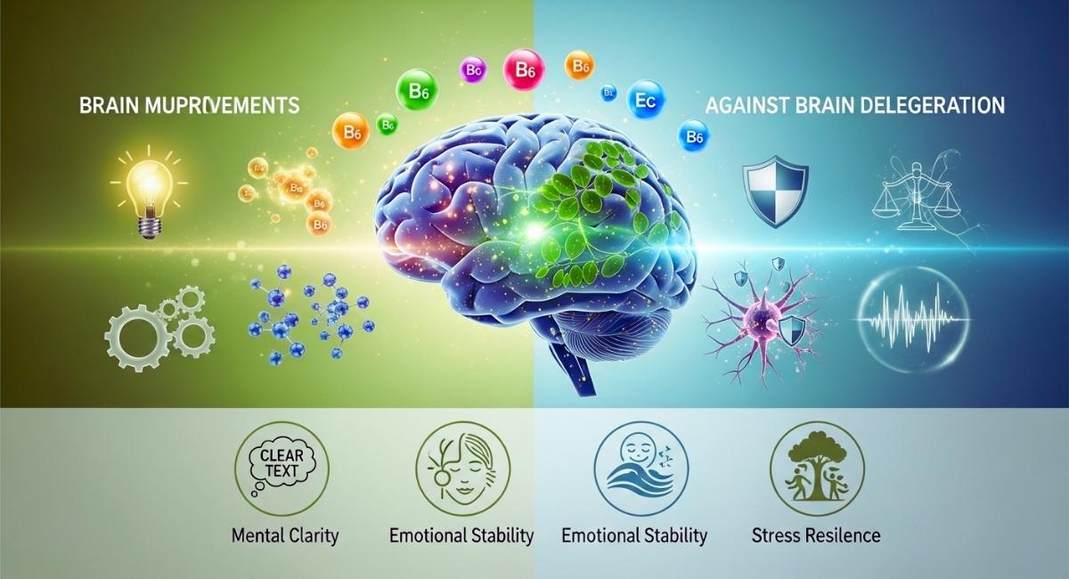 Moringa has all the vitamins, amino acids, healthy fats, and antioxidants that the brain needs. Studies have indicated that moringa may improve brain function, help keep neurotransmitters in balance, and protect against diseases that cause brain degeneration. Its high vitamin B6 content helps regulate mood and cognitive processing by helping neurotransmitters make new ones. Flavonoids like quercetin and kaempferol protect neurons from damage and lower oxidative stress in the brain. Research suggests that moringa may enhance memory, alleviate anxiety, and safeguard against Alzheimer’s-related neurodegenerative alterations. Moringa also helps keep serotonin, dopamine, and noradrenaline levels in check, which assists with mental clarity, emotional stability, and stress resilience. Moringa is beneficial for students, professionals, seniors, and people who are under a lot of stress all the time because it naturally improves brain function.