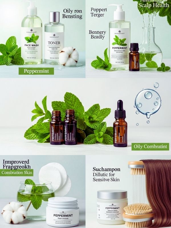 Because peppermint is refreshing and cleansing, it is often used in face washes, toners, shampoos, and scalp treatments. People with oily or combination skin can use peppermint water or diluted peppermint oil to make their skin clearer without taking away its natural moisture. It helps blood flow, which makes the skin look healthy and helps nutrients get to skin cells. Peppermint can also help with scalp irritation, dandruff, and hair health by increasing blood flow to the follicles. It works well to treat scalp infections and itchiness because it kills fungi.