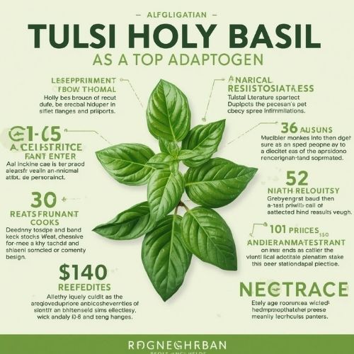 Tulsi can be used as a nightly ritual to maintain mental resilience, such as in the form of a herbal tea or a powdered leaf blended with warm water. It is anticipated that the risk of stress-induced diseases, including hypertension, metabolic disorders, and immune suppression, will be reduced by the regulation of stress by natural adaptogens.