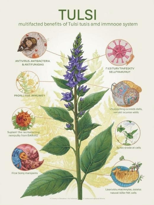 Common Applications There are numerous practical, everyday applications for tulsi, but immune system support is one of the most critical. Recent research has also demonstrated that Tulsi can enhance the responsiveness of humoral and cell-mediated immunity to S. inflexa. It also improves the function of macrophages, T-helper cells, and natural killer (NK) cells, which aids in the body’s ability to combat infections.