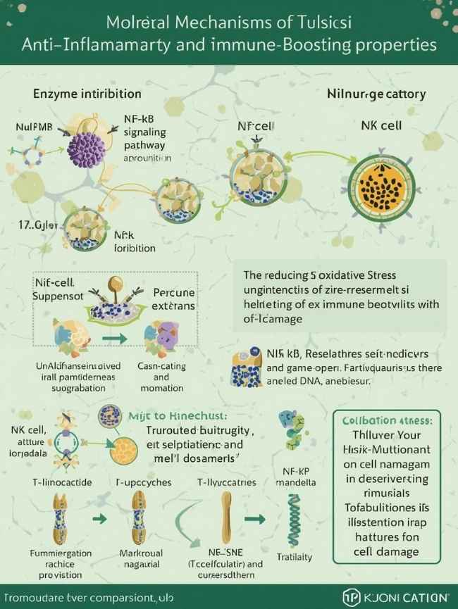 Cardiovascular diseases, arthritis, type 2 diabetes, and neurodegenerative diseases are all characterized by low-grade chronic inflammation. The anti-inflammatory effects of tulsi are attributed to the inhibition of enzymes associated with inflammation, the suppression of the NF-kB signaling pathway, and the downregulation of pro-inflammatory mediators.