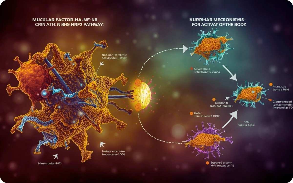 Targeting antioxidants: At the same time, curcumin activates the Nrf2 (nuclear factor erythroid 2–related factor 2) pathway. Nrf2 is crucial in mediating cellular oxidative stress and antioxidant response. Upon activation, Nrf2 increases the expression levels of antioxidant enzymes including superoxide dismutase (SOD), catalase and heme oxygenase-1 (HO-1). These enzymes help protect cells from oxidation damage.